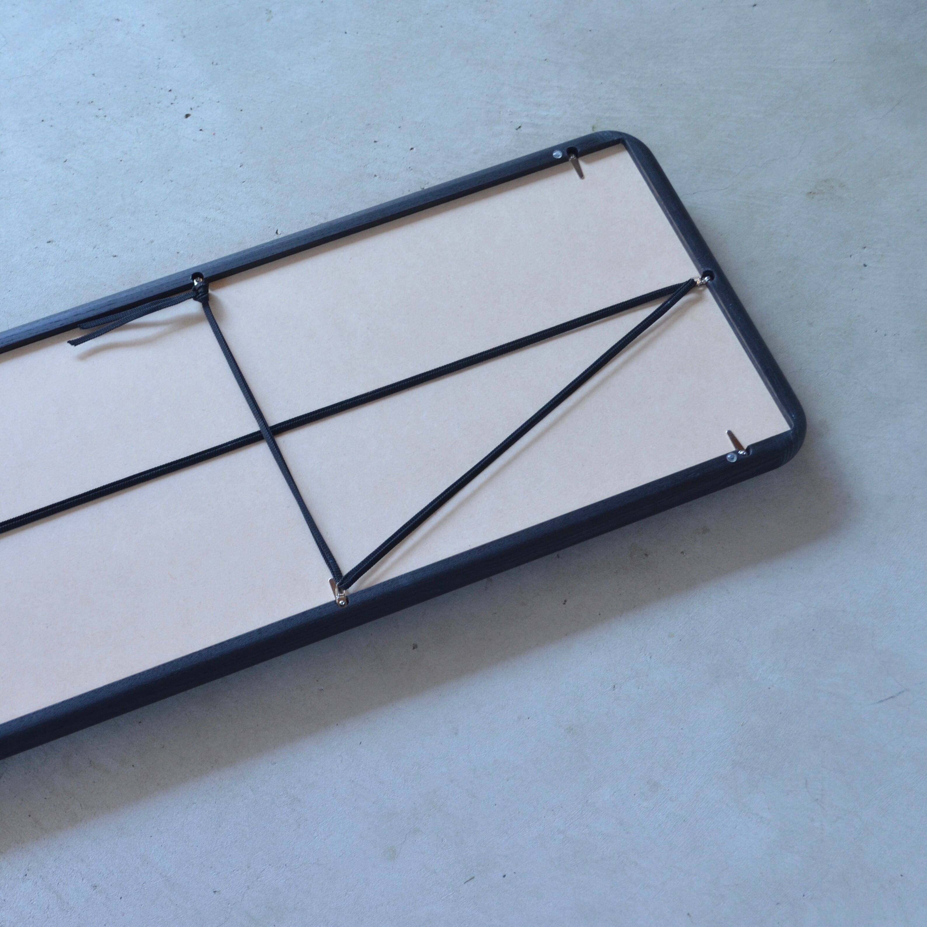 壁掛け用の紐付き、壁やミラー本体が傷つかないようゴムクッション付き。